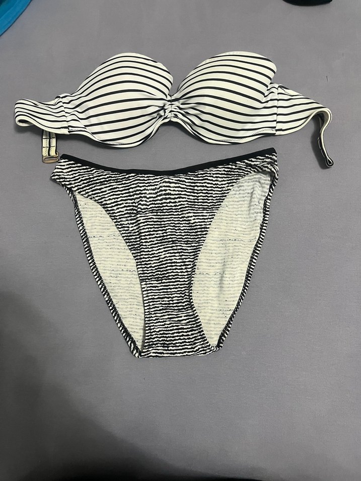 Kadınlar için, zebra desenli gri ve beyaz renkli, strappy kollu, vücuda oturan bikini. Pilili detayları ve Paris tarzı ile plajda kullanıma uygun. ️