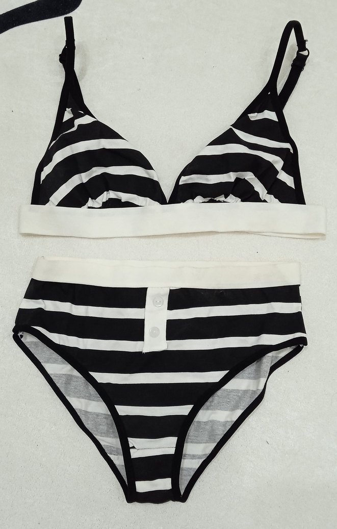 Gri ve beyaz zebra desenli, normal boy midi kesim, vücuda oturan sütyeni ve külot takımı. 85 yaziyr ama alt beden sanki s uyumlu
