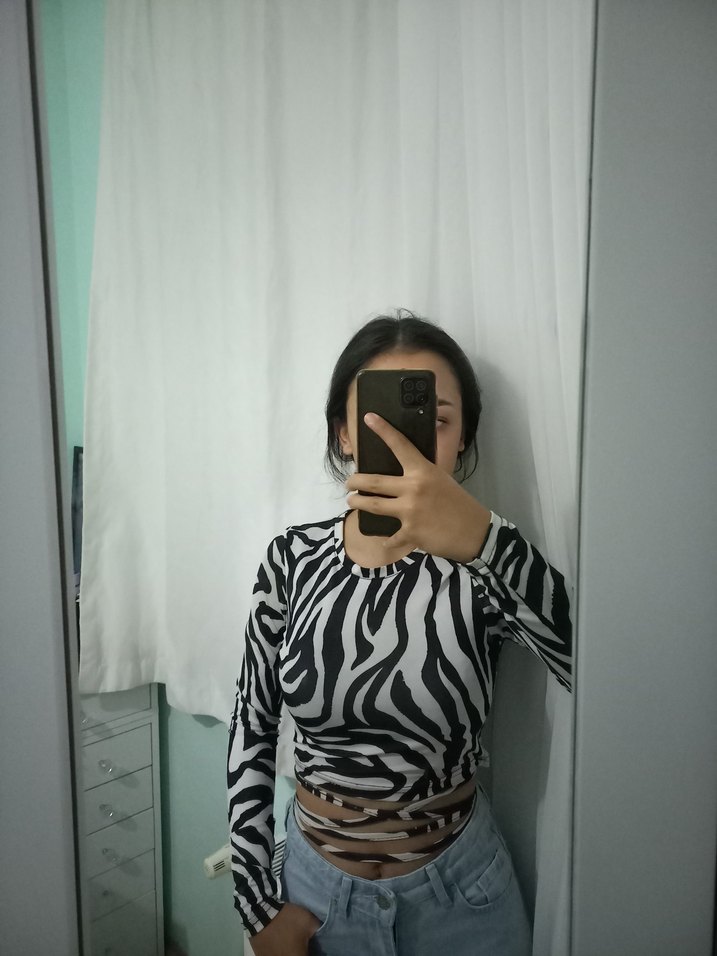 Zebra Desenli Transparan Uzun Kollu Bluz
