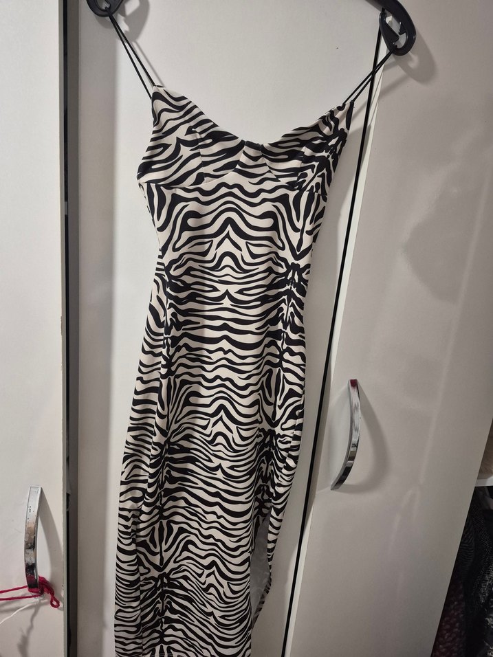 Zebra Desenli Uzun Askılı Kadın Elbise