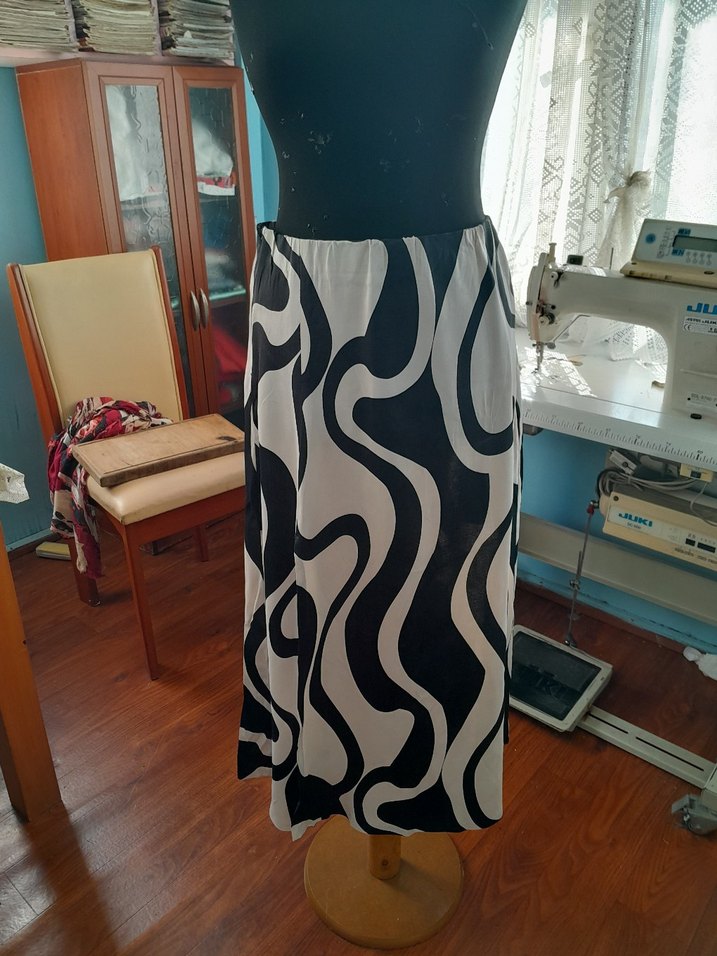 zebra desenli, drapeli ve bol kesim uzun etek. Yumuşak saten kumaştan , onden yırtmaçlı çağdaş ve avant-garde tarzlara uygundur.