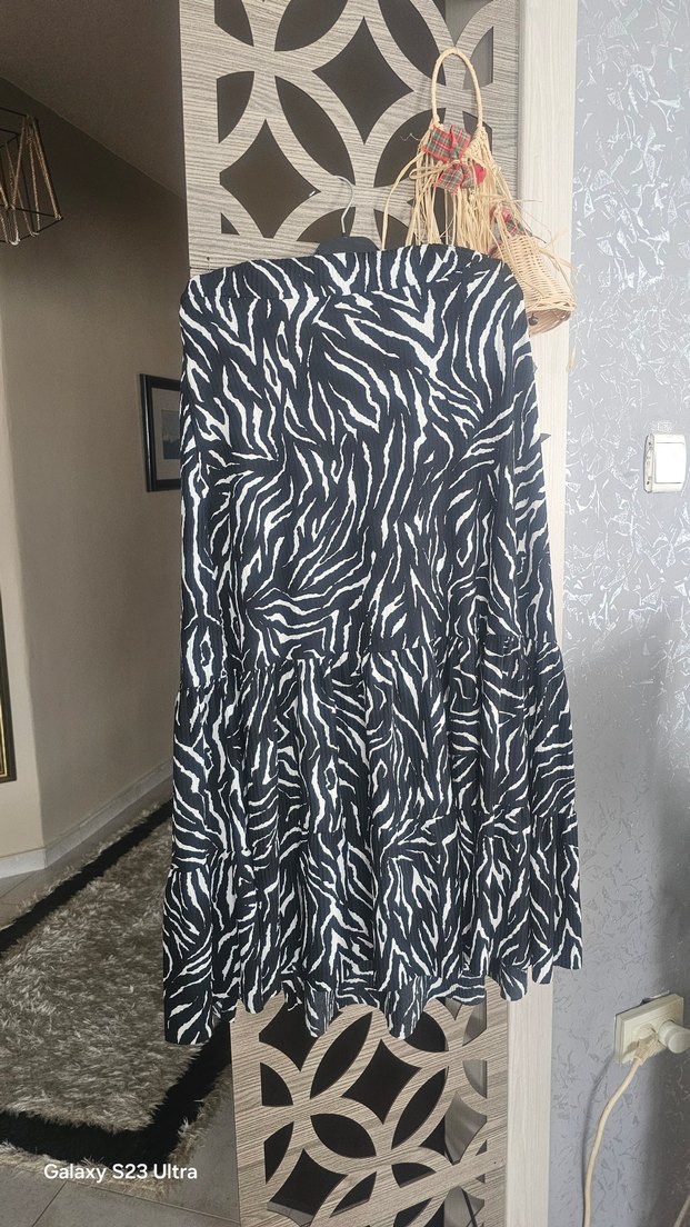 Sentetik kumaştan yapılmış, zebra desenli uzunetek. Salaş kesimiyle bohem tarzını yansıtır, günlük kullanıma uygundur.