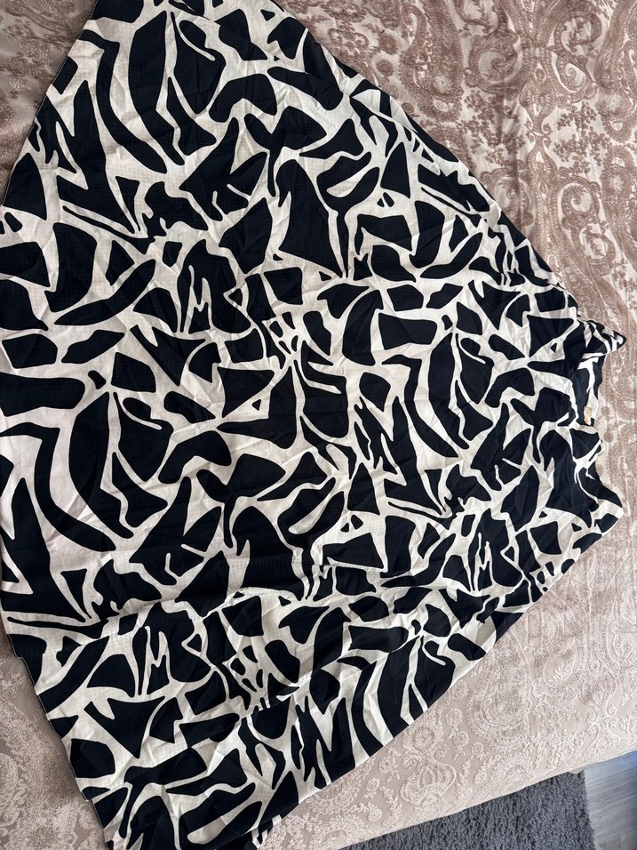 Yumuşak kumaştan, volan detaylı, uzun ve bol kesim zebra desenli hamile eteği. Günlük kullanıma uygun, çağdaş tarzda.
