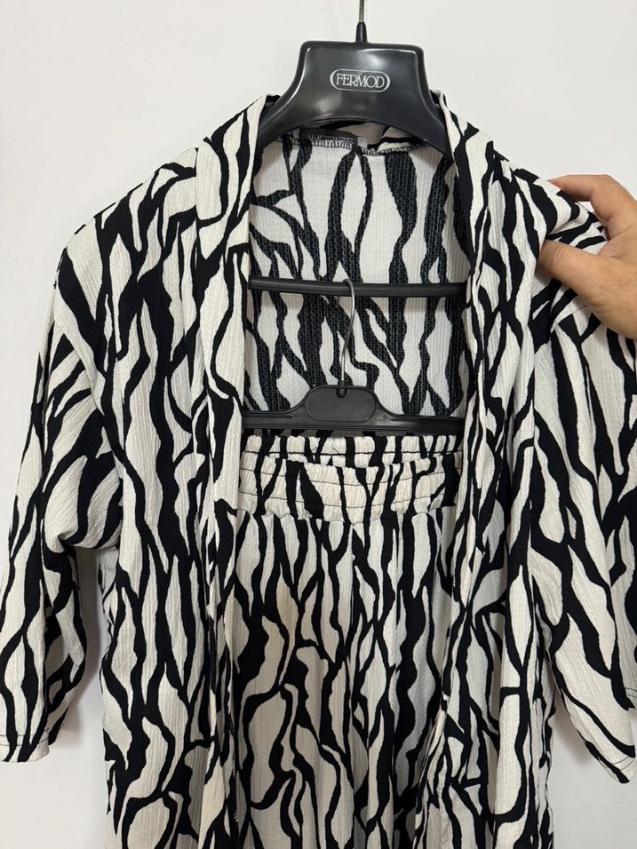 Zebra Desenli Uzun Kadın Kimono pantolon takım