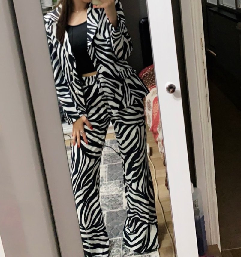 Zebra Desenli Uzun Kadın Takım Elbise