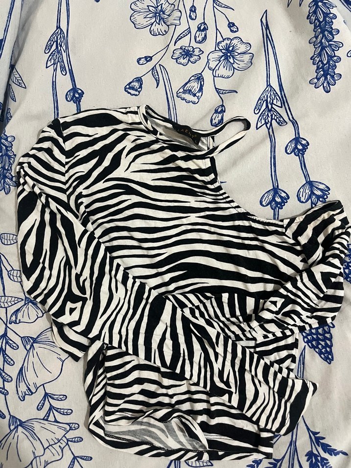Zebra Desenli Uzun Kol Kadın Bluz