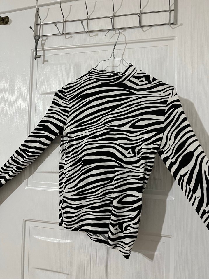 Zebra Desenli Uzun Kollu Balıkçı Yaka Bluz