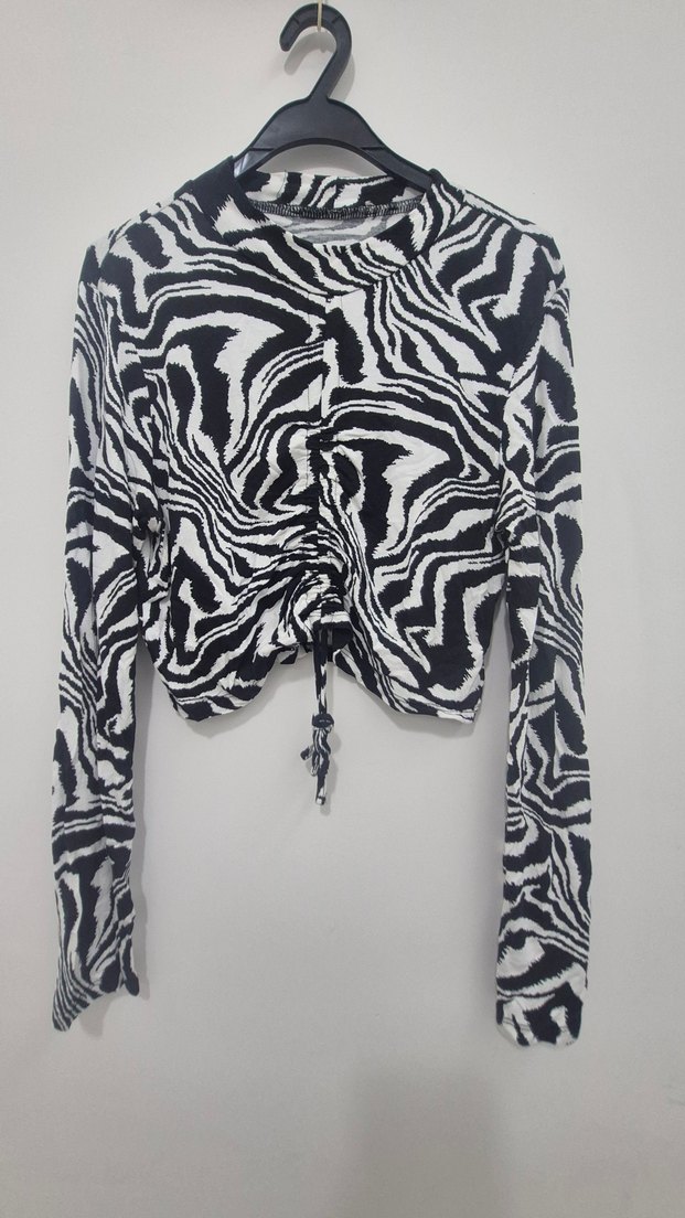 Zebra Desenli Uzun Kollu Bluz