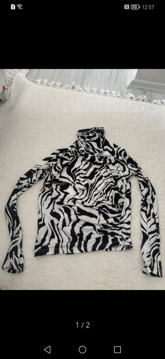 Zebra Desenli Uzun Kollu Boğazlı Bluz