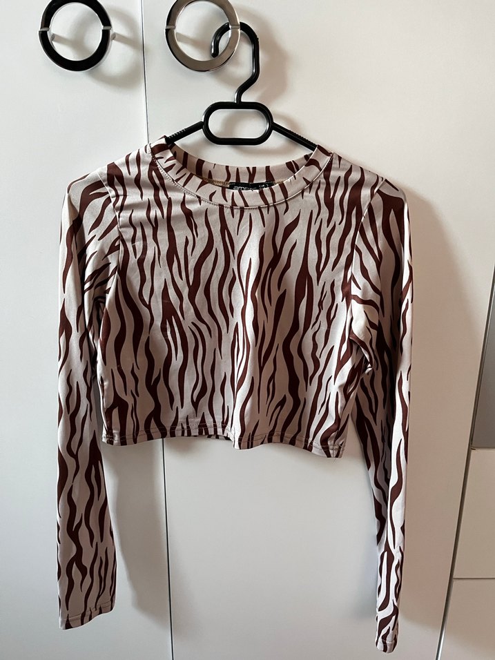 Zebra Desenli Uzun Kollu Crop Bluz