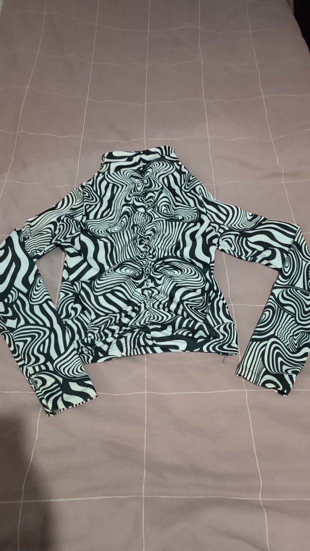 Zebra Desenli Uzun Kollu drapeli crop Boğazlı Bluz