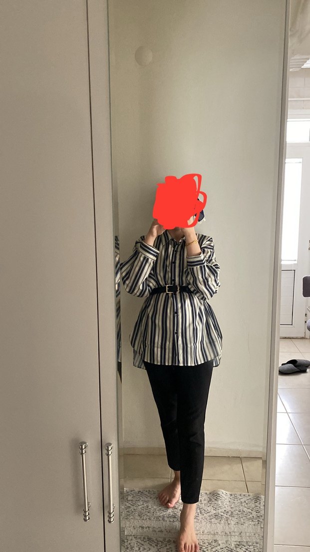 zebra desenli, uzun kollu, düğmeli ve yakalı kadın gömleği. Rahat kesimli ve günlük kullanıma uygun sentetik kumaştan yapılmıştır. 1 kere giyilmiştir bol kesimdir l xl da rahatlıkla olur