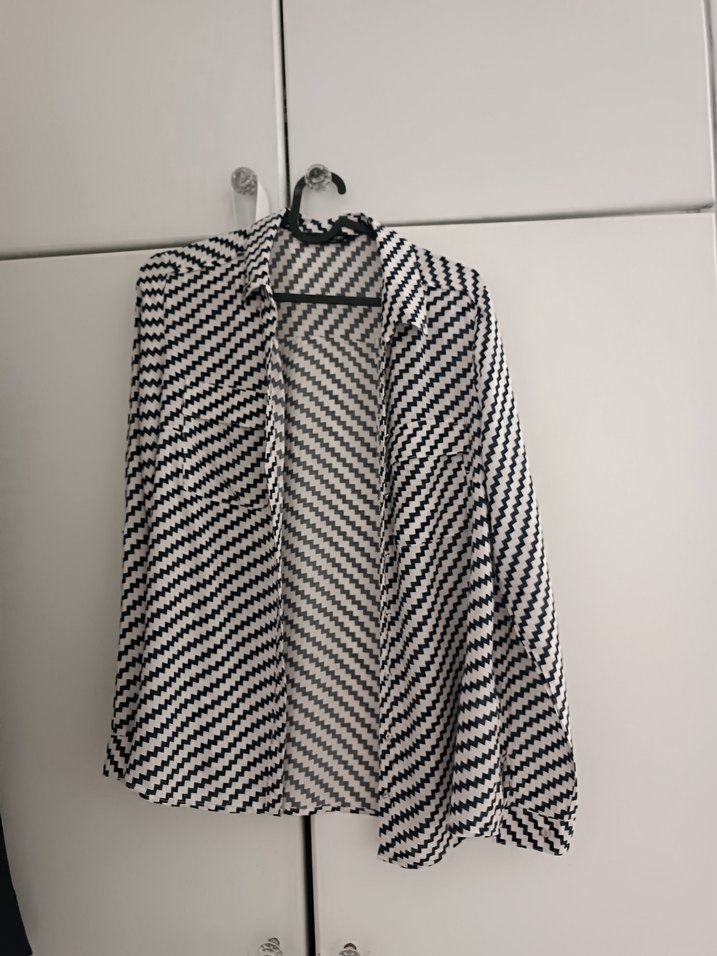 Kadınlar için zebra desenli, pileli ve uzun kollu gömlek. Notched lapel yakalı, gri renkte ve normal kesimde. Günlük sokak modasına uygun rahat bir parça.