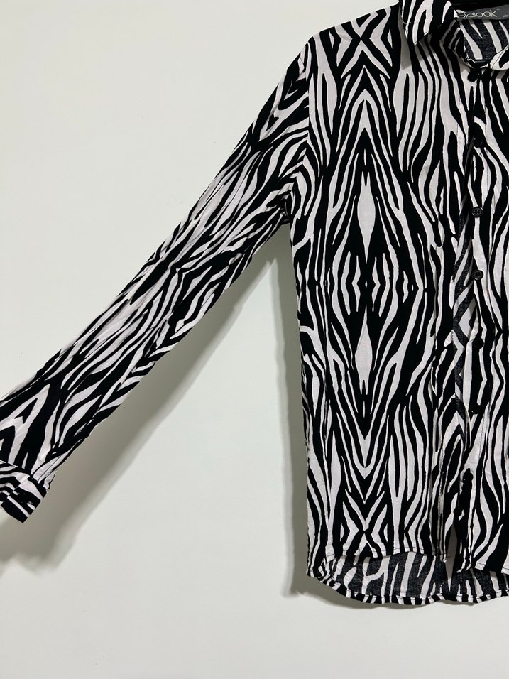 Zebra Desenli Uzun Kollu Kadın Gömlek