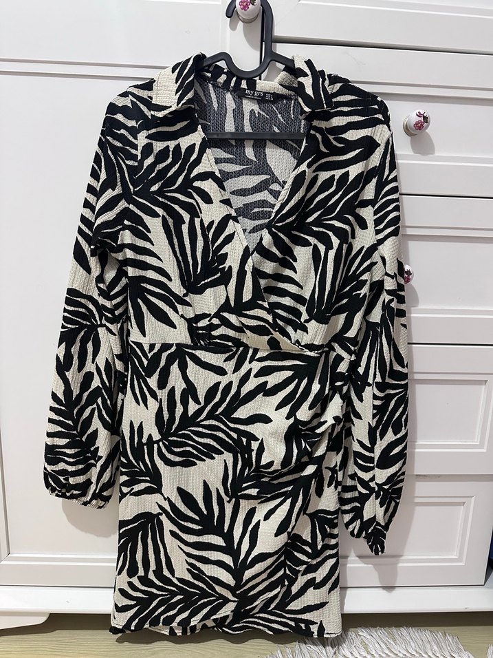 Zebra Desenli Uzun Kollu Kadın Mini elbise