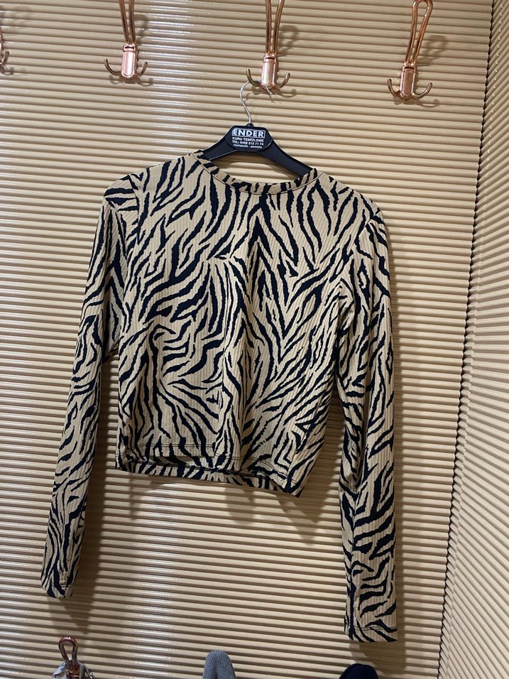 Zebra Desenli Uzun Kollu Mini Bluz
