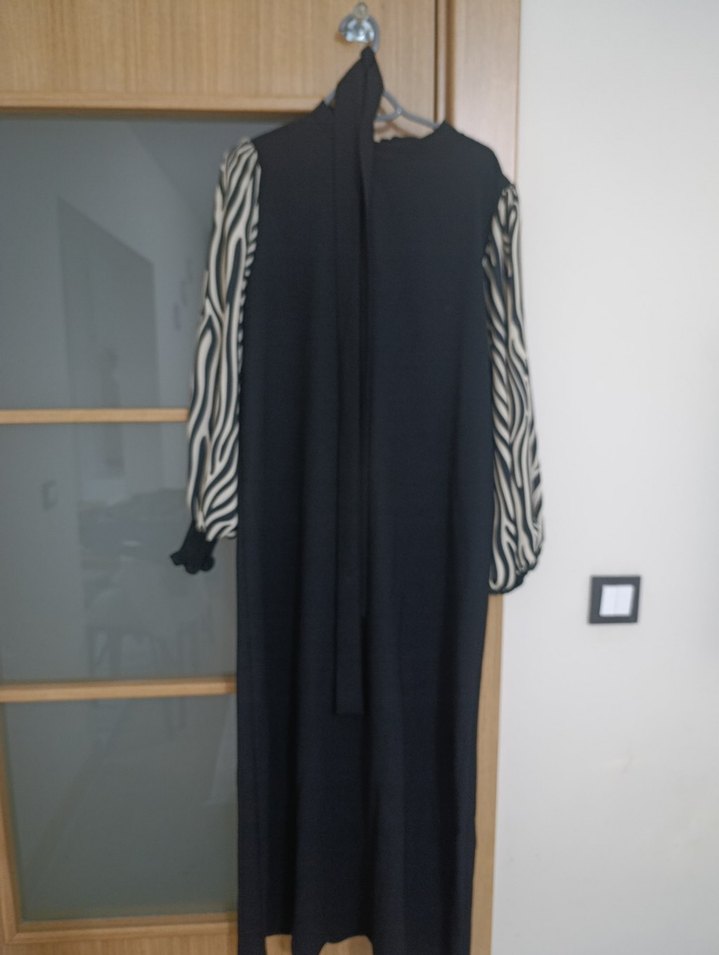 Zebra Desenli Uzun Kollu Siyah Elbise