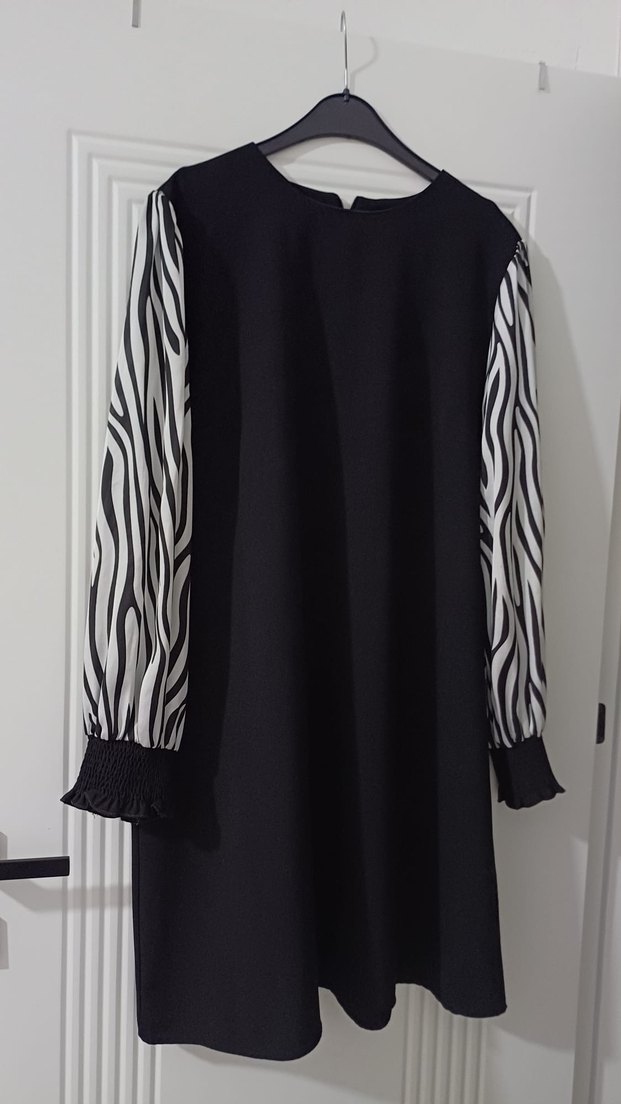 Zebra Desenli Uzun Kollu Siyah Elbise