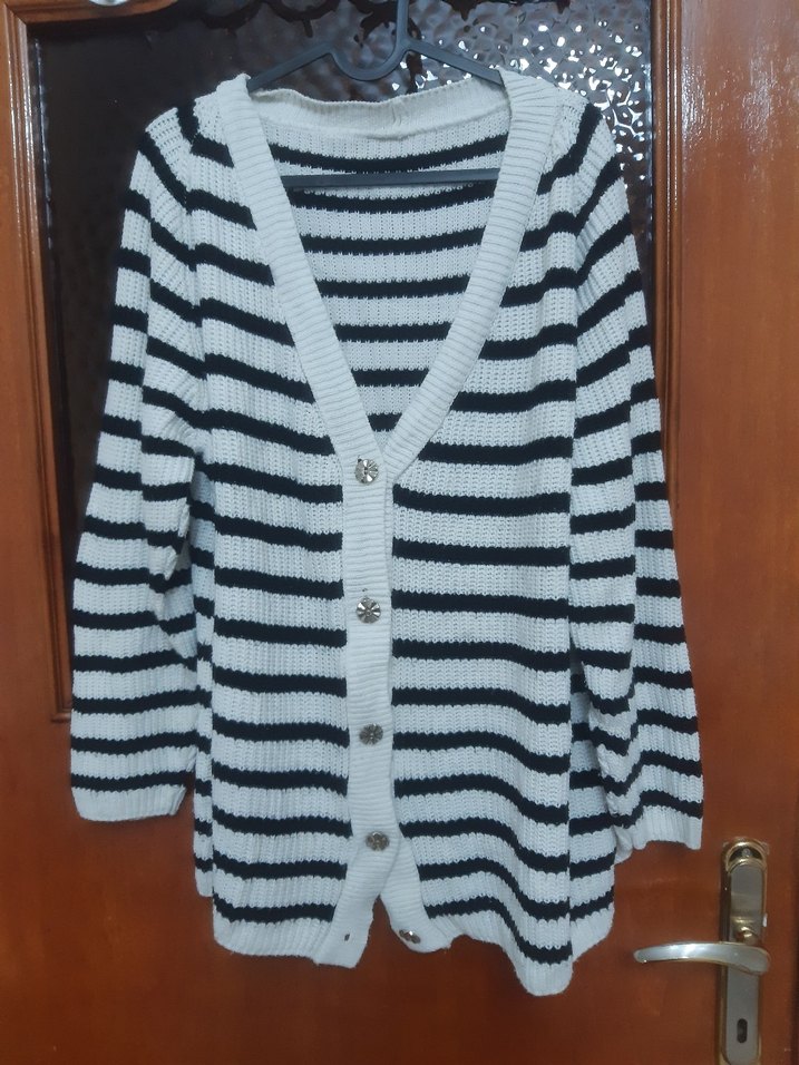 Zebra desenli, uzun kollu ve triko örme yapıda olan bu hırka, salaş ve günlük kullanıma uygun rahat bir stile sahiptir. Salaşş