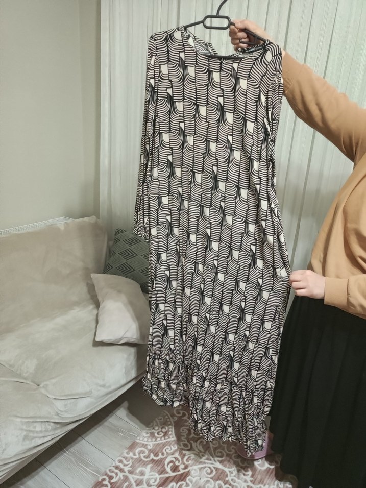 Zebra Desenli Uzun Pilili Kadın Elbise