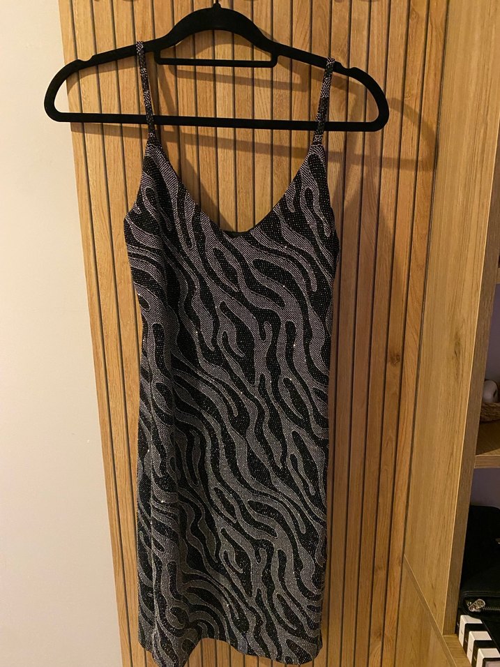 Zebra Desenli V Yaka Uzun Kadın Elbise