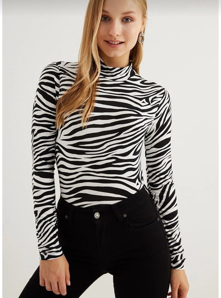 Zebra Desenli Yarım Balıkçı Yaka Kadın Bluz