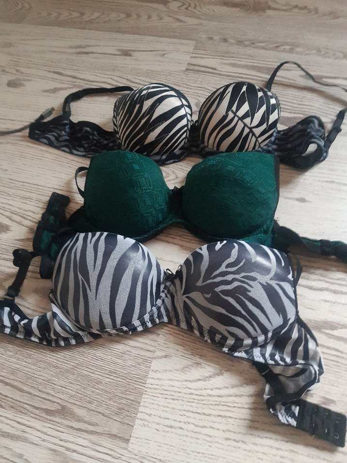 Zebra desenli ve koyu yeşil renkte, rahat ve karşı kültür tarzını yansıtan normal uzunlukta midi sütyenler.85 b 80 b sorunsuz 3 adet