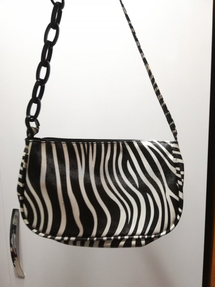 Zebra Desenli Zincir Detaylı Deri Kadın Çanta