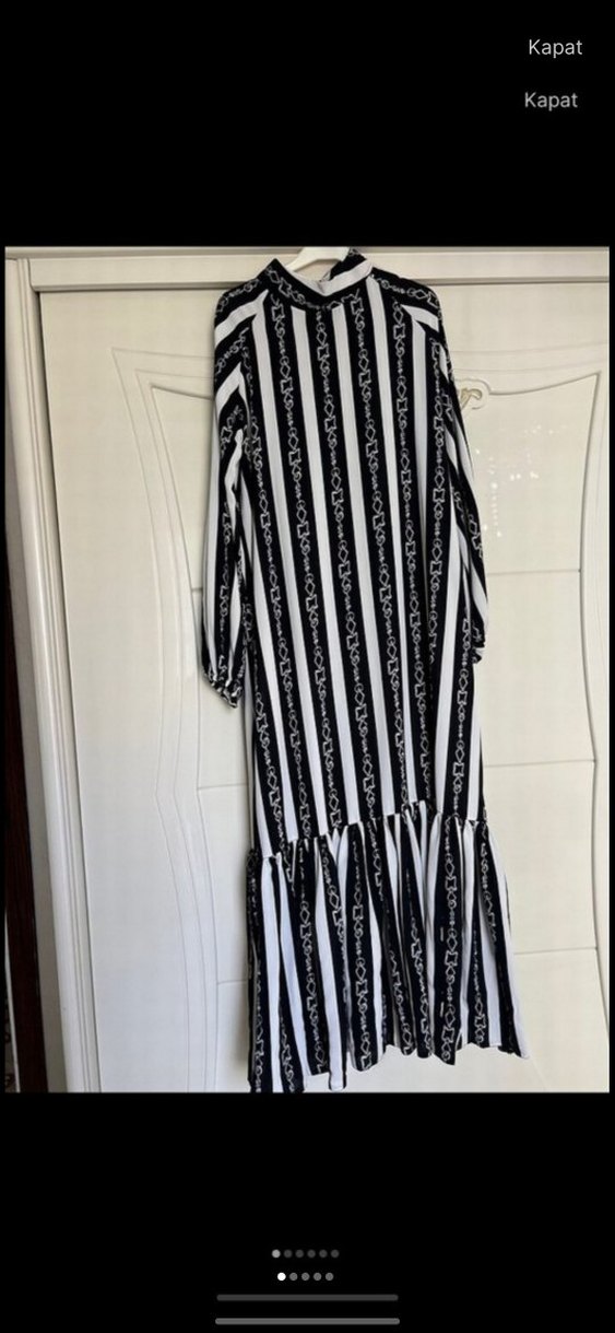 Zebra Desenli Zincir Detaylı Uzun Kadın Elbise
