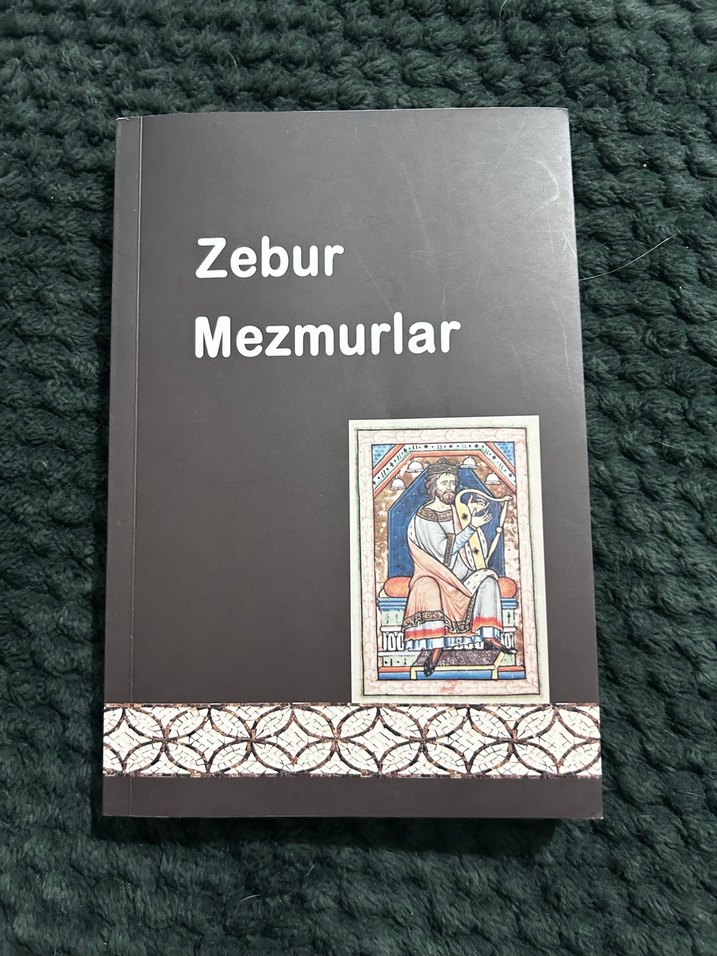 Zebur Mezmurlar kitabı, dini mezmurlar ve dualar içerir, kapağında geleneksel bir resim bulunur.