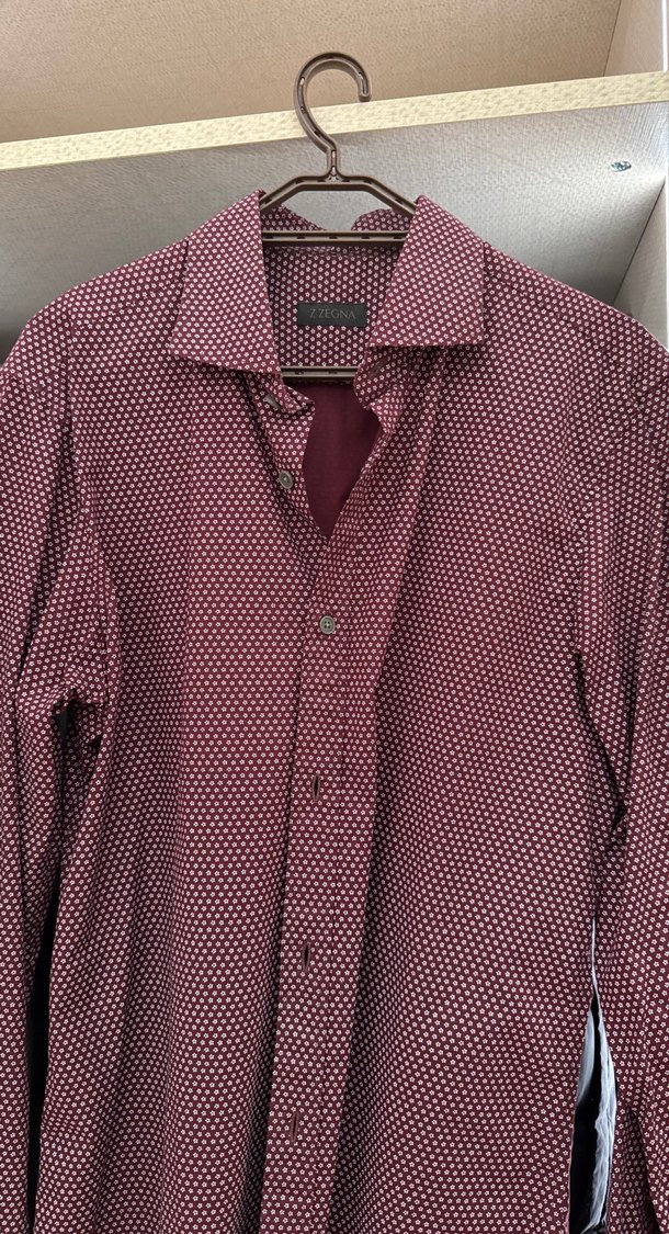 Zegna marka 40 bedenBordo Erkek Uzun Kollu Düğmeli Gömlek