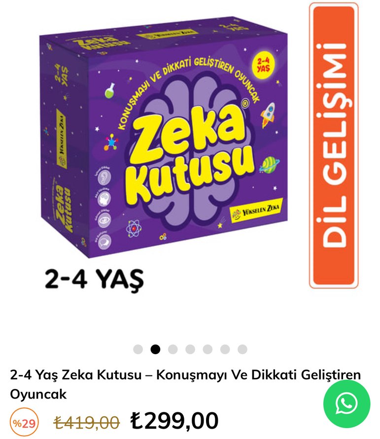 2-4 yaş çocuklar için Zeka Kutusu, konuşma ve dikkat gelişimini destekler. 35 adet kart vardır. ( arkalı önlü toplam 70 soru )