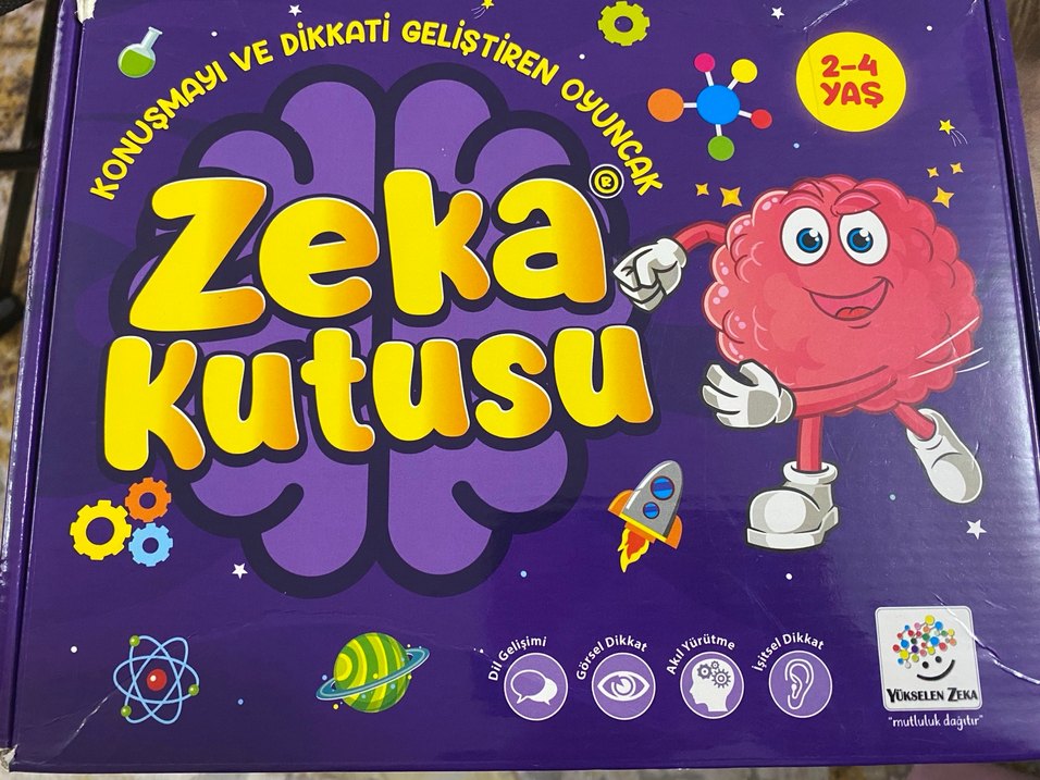 Mor renkli Zeka Kutusu oyuncak, zeka ve dikkati geliştirmeye yönelik renkli görseller içerir. Dil gelişimi, görsel dikkat, akıl yürütme ve içsel dikkati destekler. kartların bir kaç tanesinde katlanma olduğu için hafif iz var,yırtık vs yok,tüm parçaları tam,bir üst yaşını aldığım için satıyorum,2-4 yaş.
