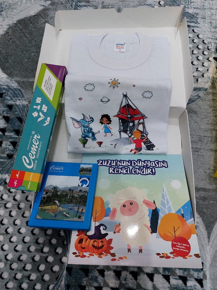 1 adet Tshirt 1 adet Tangram 1 adet Geleneksel Puzzle 1 afet Boyama Kitabı HEPSİ YENİ KUTULU , PAKETLİ