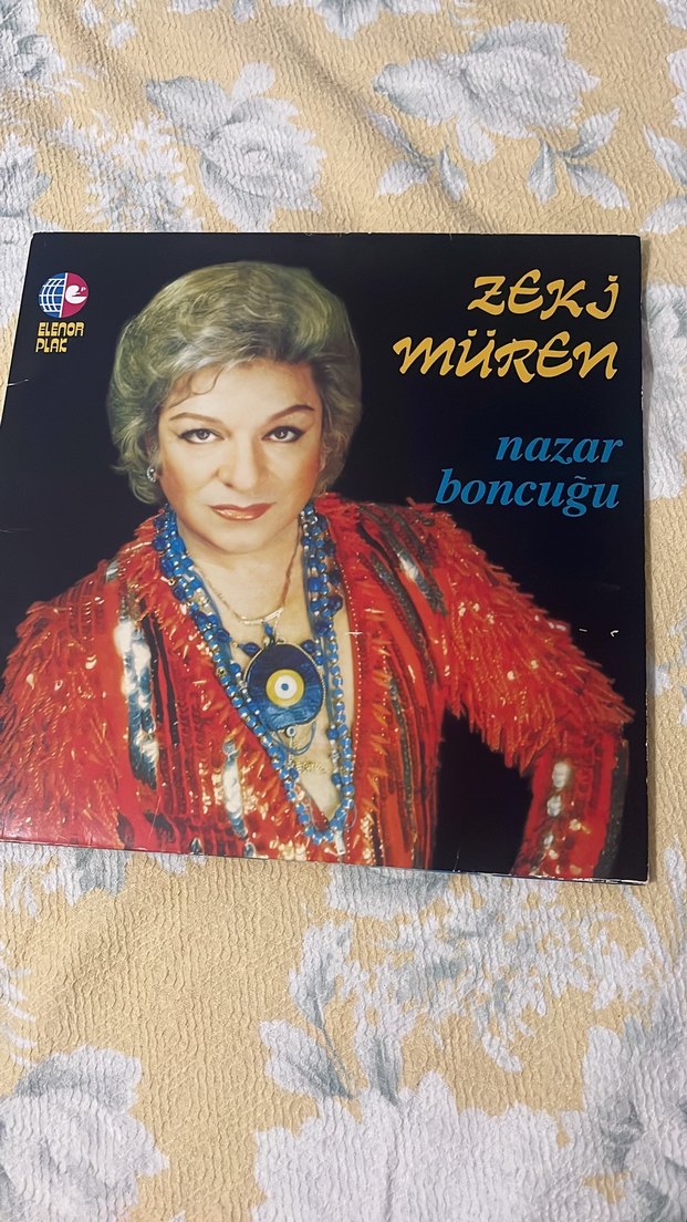 Zeki Müren'in "Nazar Boncuğu" albümünün plak kaydı. Klasik Türk müziği ve dikkat çekici kapak görseli. Hasarlı bir tarafı çok iyi diğer tarafı çizik olmuş