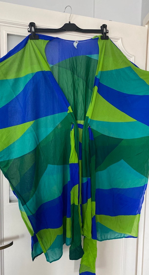 Kadınlar için drapeli tasarıma sahip, hafif sentetik kumaştan yapılmış koyu yeşil ve mavi tonlarında bohem tarzı deniz elbise zeki triko yeni hiçbir defosu yok