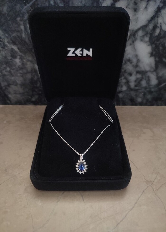 Ürün hiç kullanılmadı. Kutusu, hediye paketi ve sertifikasıyla beraber gönderilecektir. 0,33 karat safir ve 8 ayar beyaz altın içerir. Hediye geldi ve kolye sevmediğimden satıyorum.