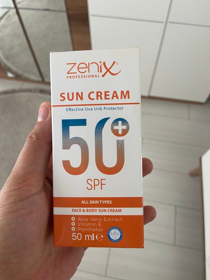 Zenix SPF 50 güneş kremi, aloe vera, vitamin E ve panthenol içeriğiyle tüm cilt tipleri için yüz ve vücut koruması sağlar. Etkili UVA ve UVB koruyucudur.
