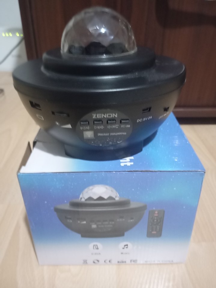 ZENON siyah mini projektör, çoklu bağlantı noktaları ve uzaktan kumanda ile kompakt tasarım sunar. Ortam için renkli ışık efektleri yansıtır. Blutut, USB müzik çalar. arızası yok. sağlam iyi durumda.