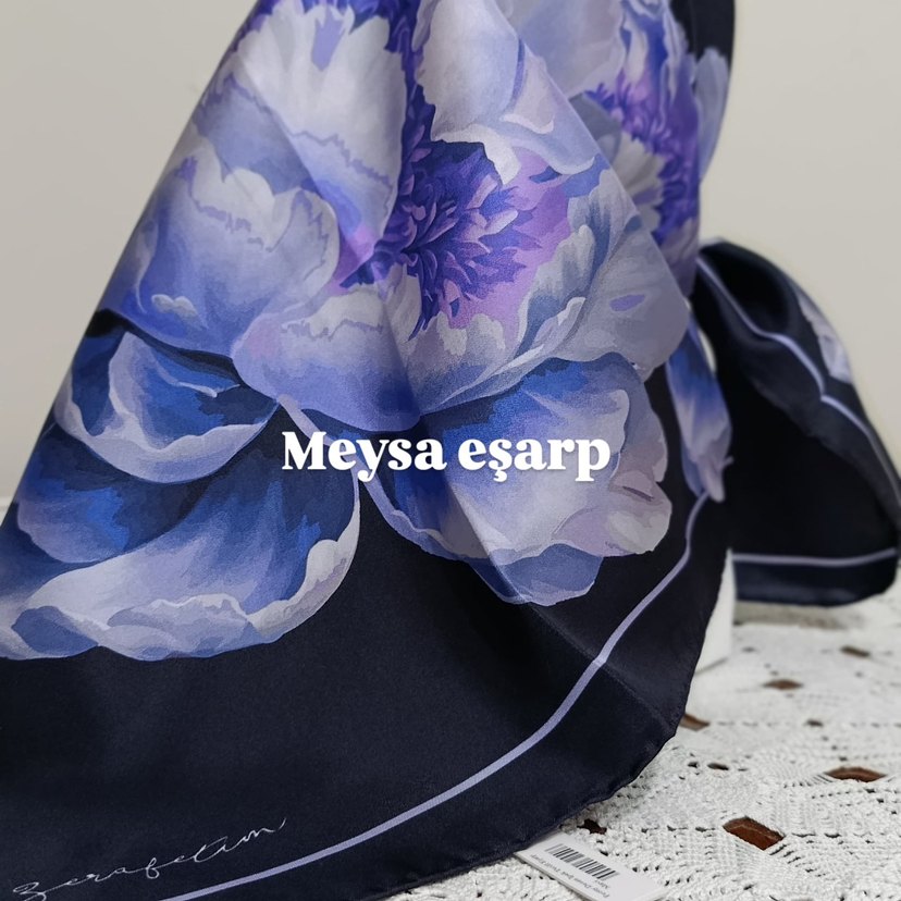 mor renkli, ipeksi kumaştan yapılmış, çiçek desenli ve drapeli tasarıma sahip çağdaş Paris tarzı kadın eşarp