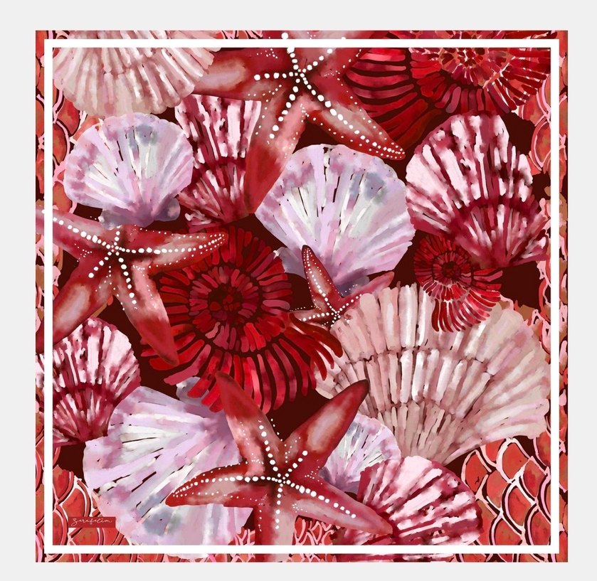 Deniz yıldızı ve deniz kabuğu desenli, açık bordo renkte tırnak süsü.