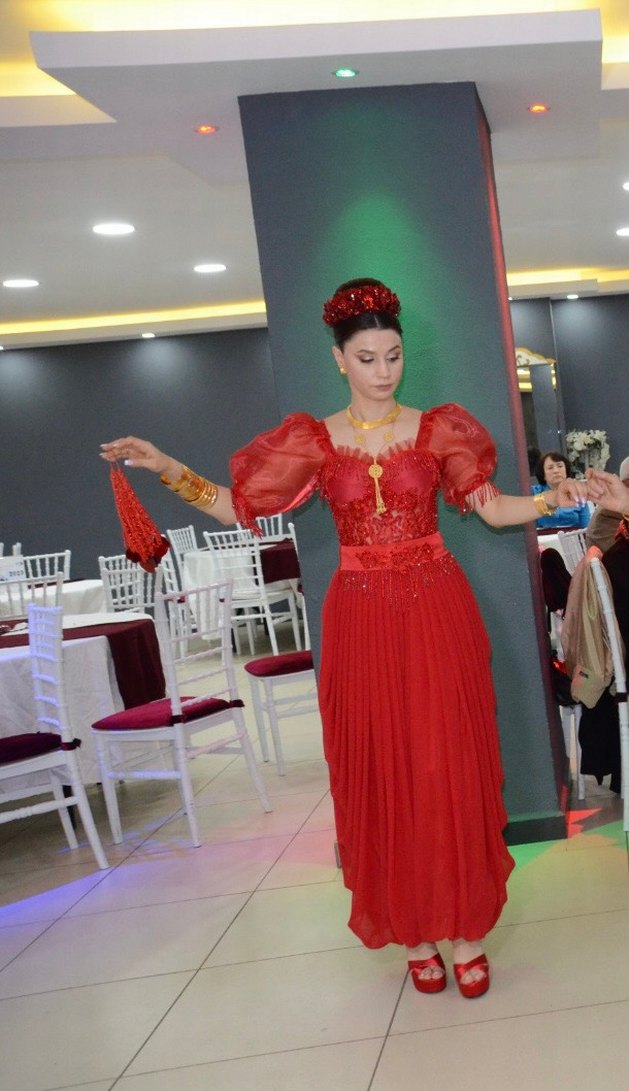 Balkan kültürünün dokunuşlarıyla bezenmiş, göz alıcı kırmızı tonlara sahip bu özel tasarım şalvar takımı, geleneksel estetiği modern zerafetle buluşturuyor. Kabarık kolları, ince ve cam boncuk işlemeli transparan büstiyer üstü 36-38 bedene uyumlu arkadan bağlamalı şekilde tasarlanmıştır. Beden 36 olup şalvarı da 36-38 beden kullanıma uygundur. Sadece bir kez giyilmiş olup kuru temizleme sonrasında özenle saklanmaktadır. Dolabımda yer olmaması sebebi ile normal satış fiyatlarının çok altına satmaktayım. Düğün, kına gecesi, sahne gösterisi ve kültürel etkinlikler için uyumlu bir kıyafettir. Tacım ise bir kere kullanılmış, şalvarımla uyumlu seçmiş olup üç boyutlu swarovski taşlıdır. Düşünenler için takım şeklinde fiyatlandırma yapabilirim.