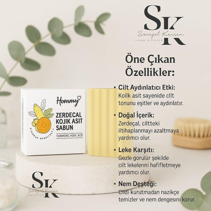 Zerdeçal ve kojik asit içeren sabun, iltihaplanmayı azaltır ve cilt lekelerini hafifletir. Nazikçe temizler, nem dengesini korur ve cilt tonunu aydınlatır.