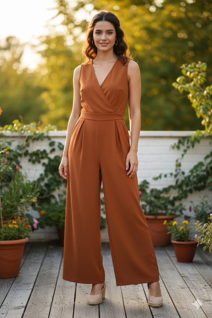 kolsuz, V yakalı, drapeli tasarıma sahip sentetik kumaştan yapılmış, regular fit ve uzun boy tulum. Açık hava için uygundur. ürün boy 140 cm 2 omuz arası 33 cm iki kol altı arası 42 cm bel 38 cm yan tarafında 24 cm açılan fermuar vardır önünde 2 adet pilesi ve yanlarında 2 adet derin cepleri vardır kemeri mevcut değildir