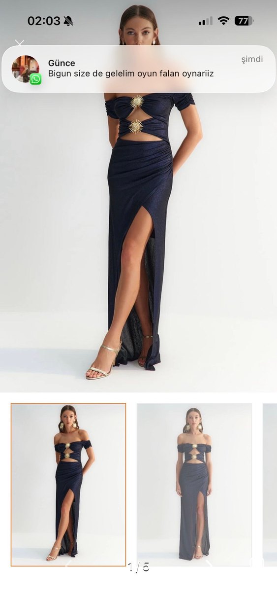 Kadınlar için lacivert, straplez, drapeli, uzun ve dar kesim elbise. İnce askılı ve yırtmaçlı, ipeksi kumaştan, cesur ve çağdaş tarzda, romantik akşamlar için uygun.