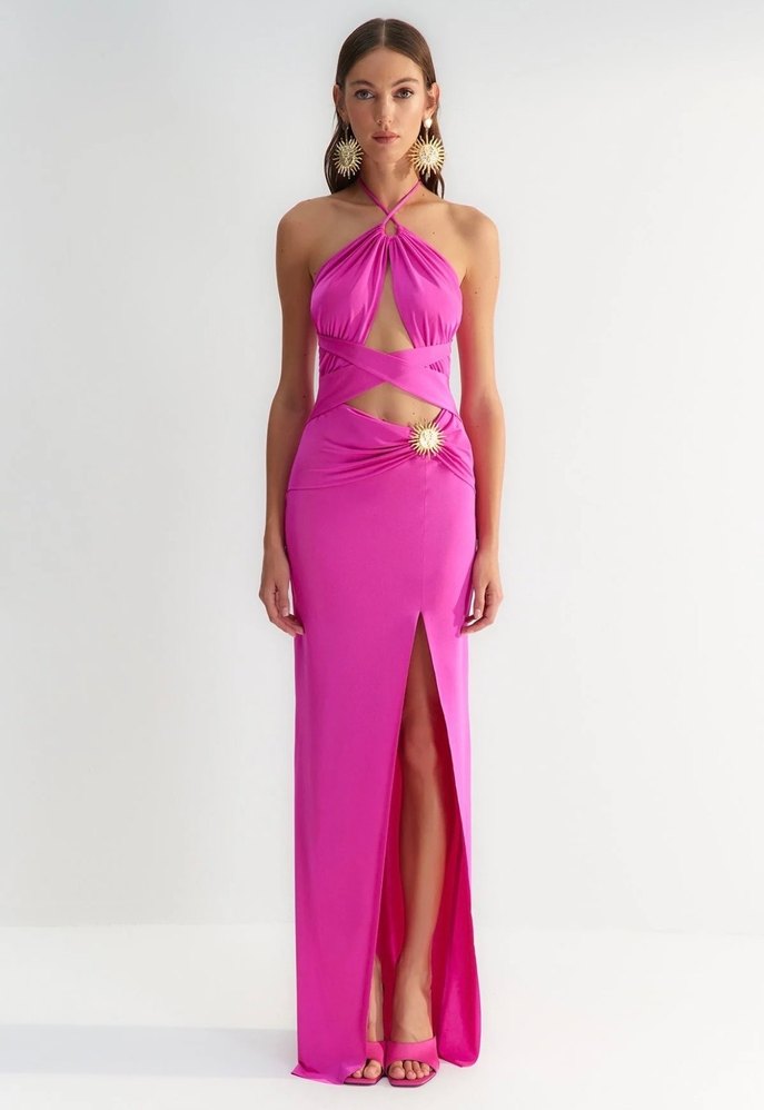 Zeynep Tosun Pembe Drapeli Uzun Abiye Elbise