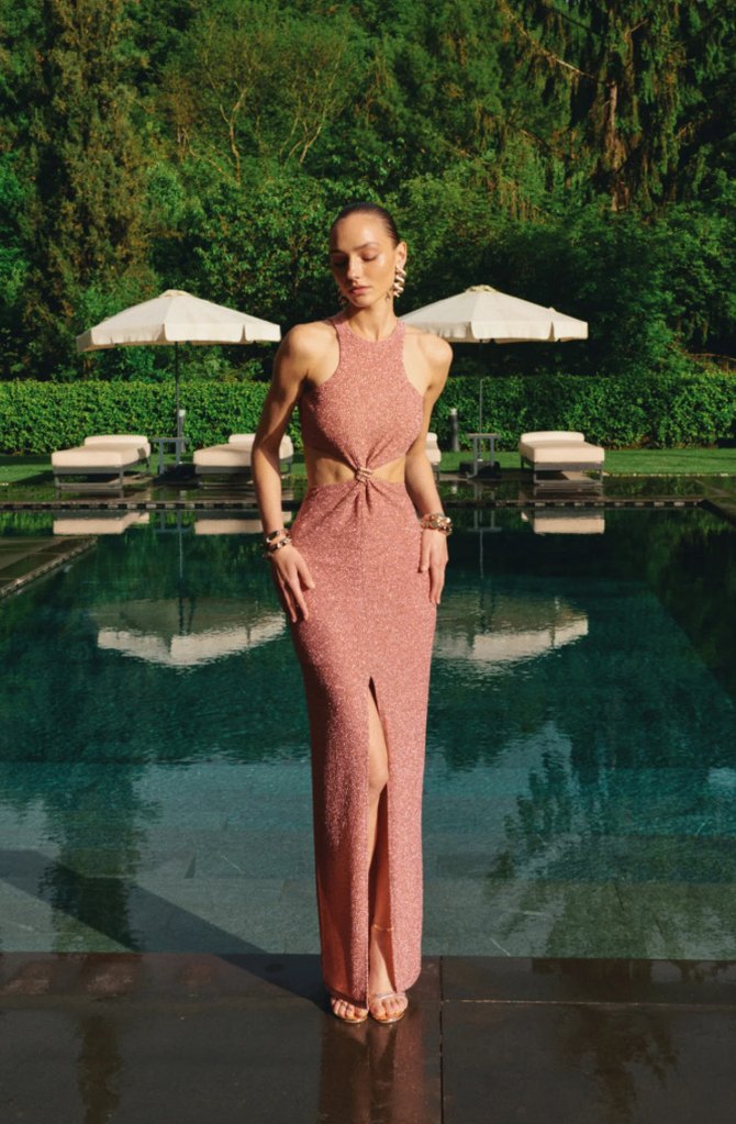 Zeynep Tosun Trendyol Pembe Yılan Detaylı Gece Elbisesi