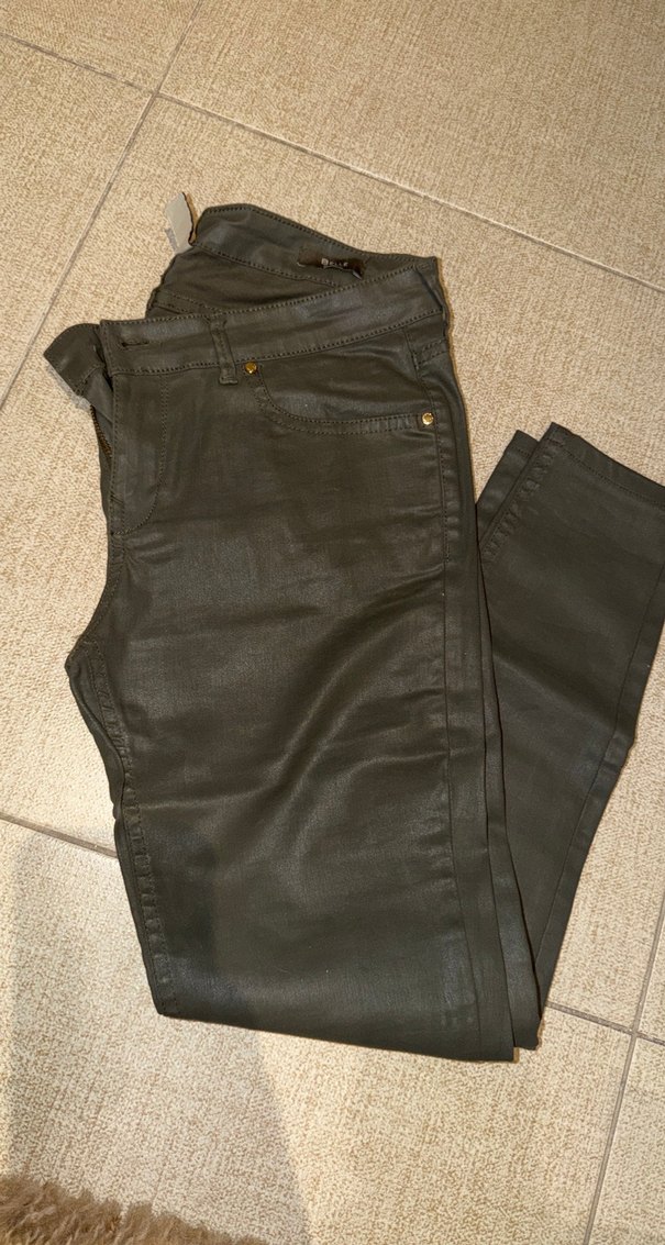 Zeytin yeşili Deri Kadın Pantolon