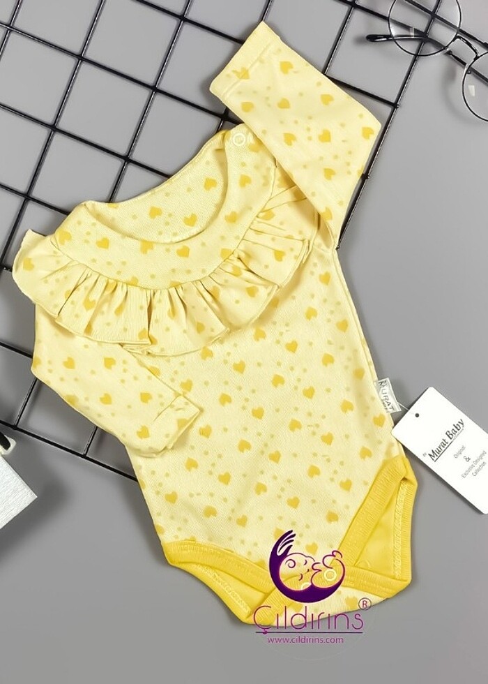 Fırfır detaylı mükemmel kalite uzun kol kalp baskılı zıbın Pembe Sarı Pudra renkleri stoklarımızda mevcuttur
