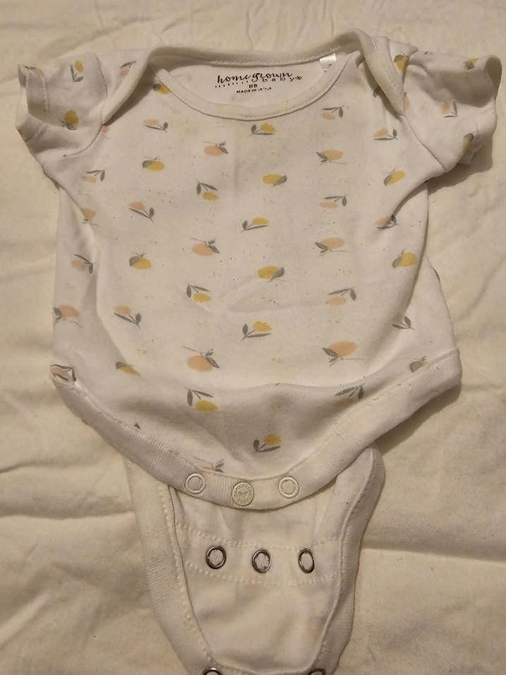 Kısa kollu, beyaz ve pastel renkli küçük desenlere sahip bebek body. Kolay giydirme için düğmeli tasarım. Amerikadan alındı 0-6 ay arası uygun